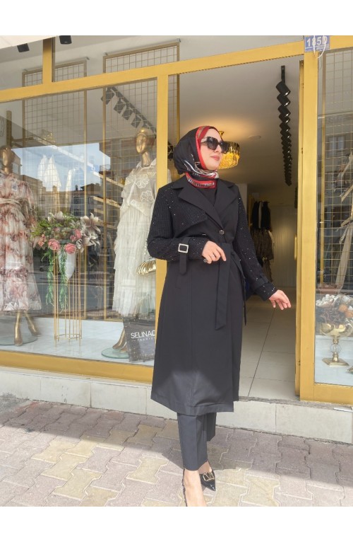 Trenç Pullu File Detaylı Siyah Kod:25623..
