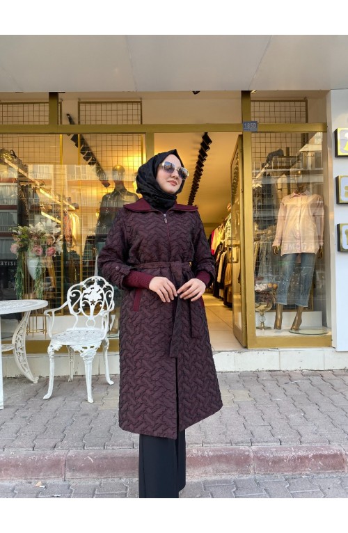 Jakarlı Kabarmalı Kap Bordo 25624..