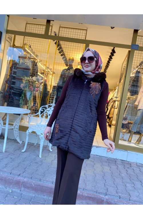 Çizgili Angora Yelek Kahve 02935..
