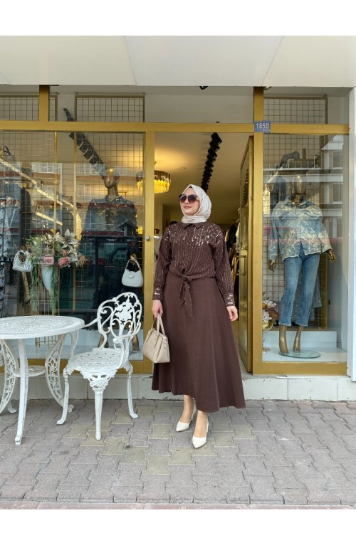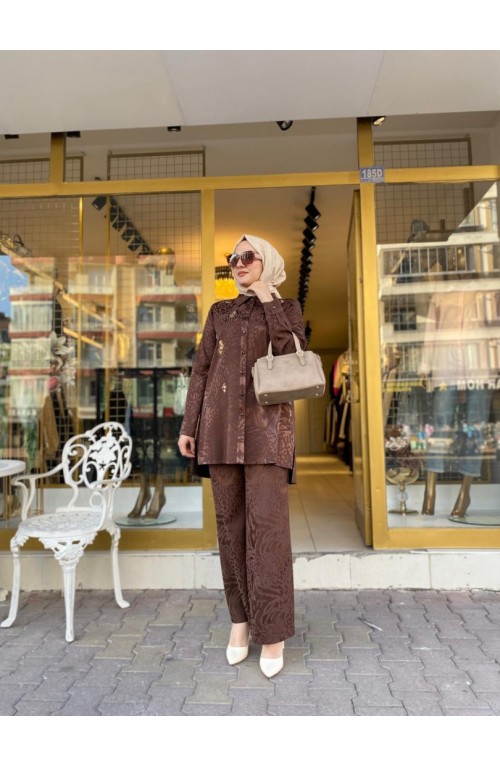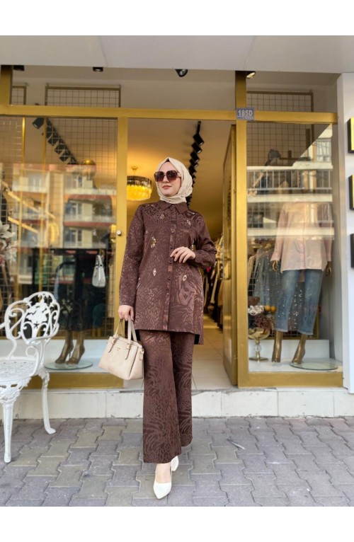 Önü Pul İşleme Det Etekli Takım Kahve Kod:19494..