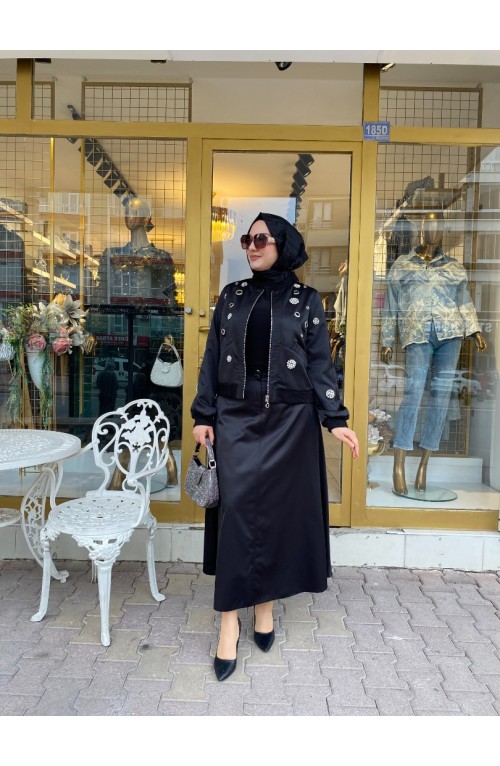 Ceketi Taş Detaylı Etek Takım Siyah Kod: 14327..