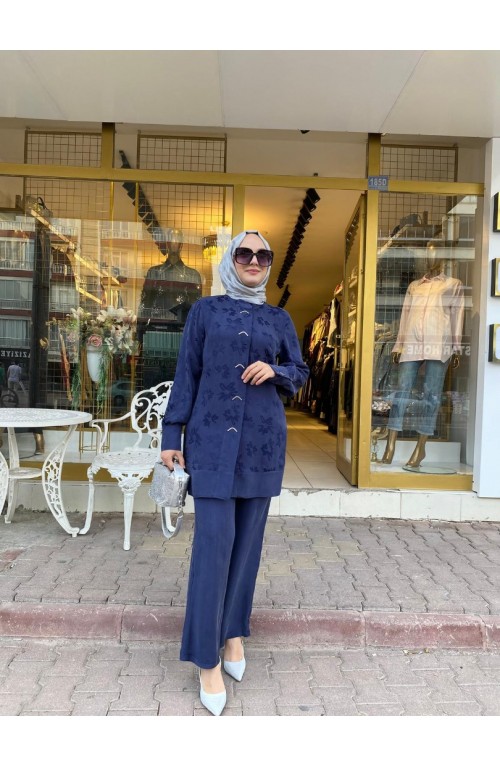 Metal Aksesuar Det İpek Kupra Takım Lacivert Kod: 19391..